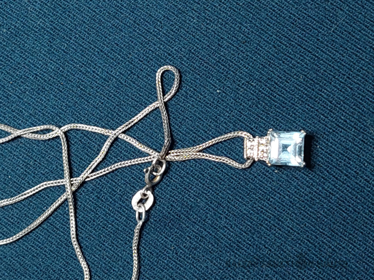 Sudraba kaklarota ar dabīgo akvamarīnu. 925 prove, ķēdītes garums-62cm.