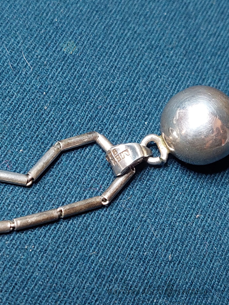 Sudraba kaklarota ar bumbulītī-zvaniņu 925 prove. Ķēdes garums 42cm., Svars -15gr.