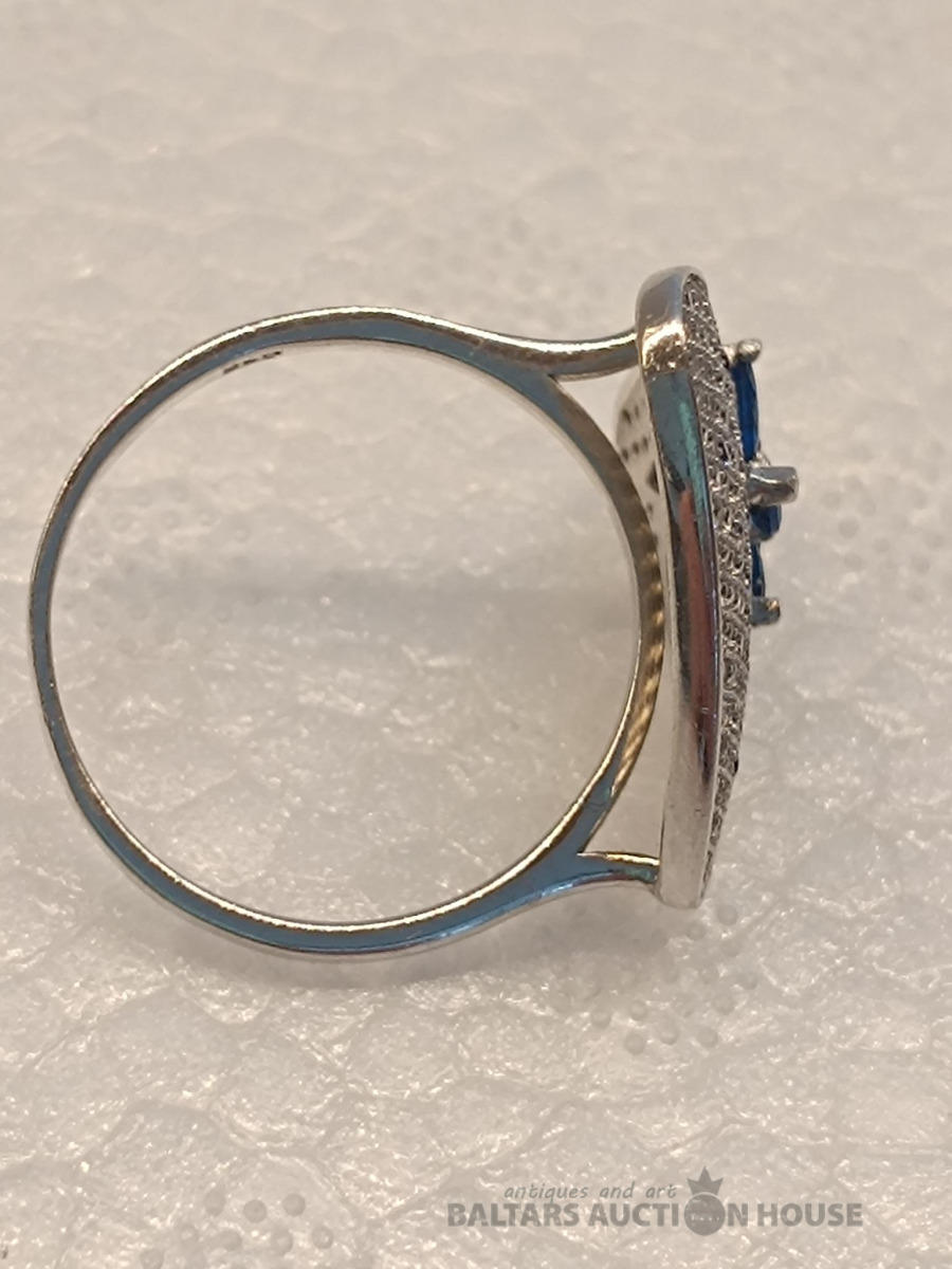 Ļoti skaists, sudraba 925 gredzens ar zilajiem špineliem. izmērs 19.