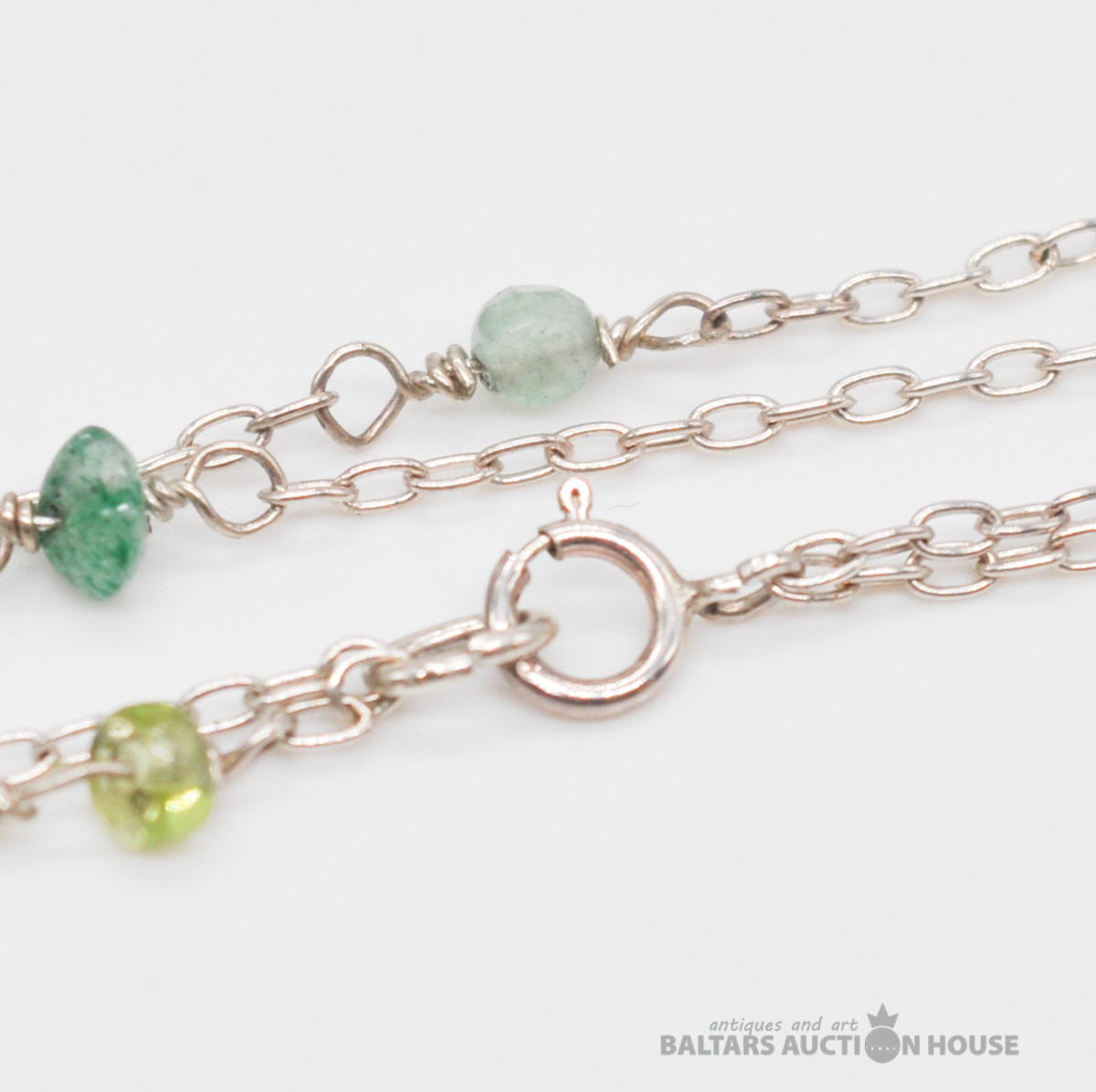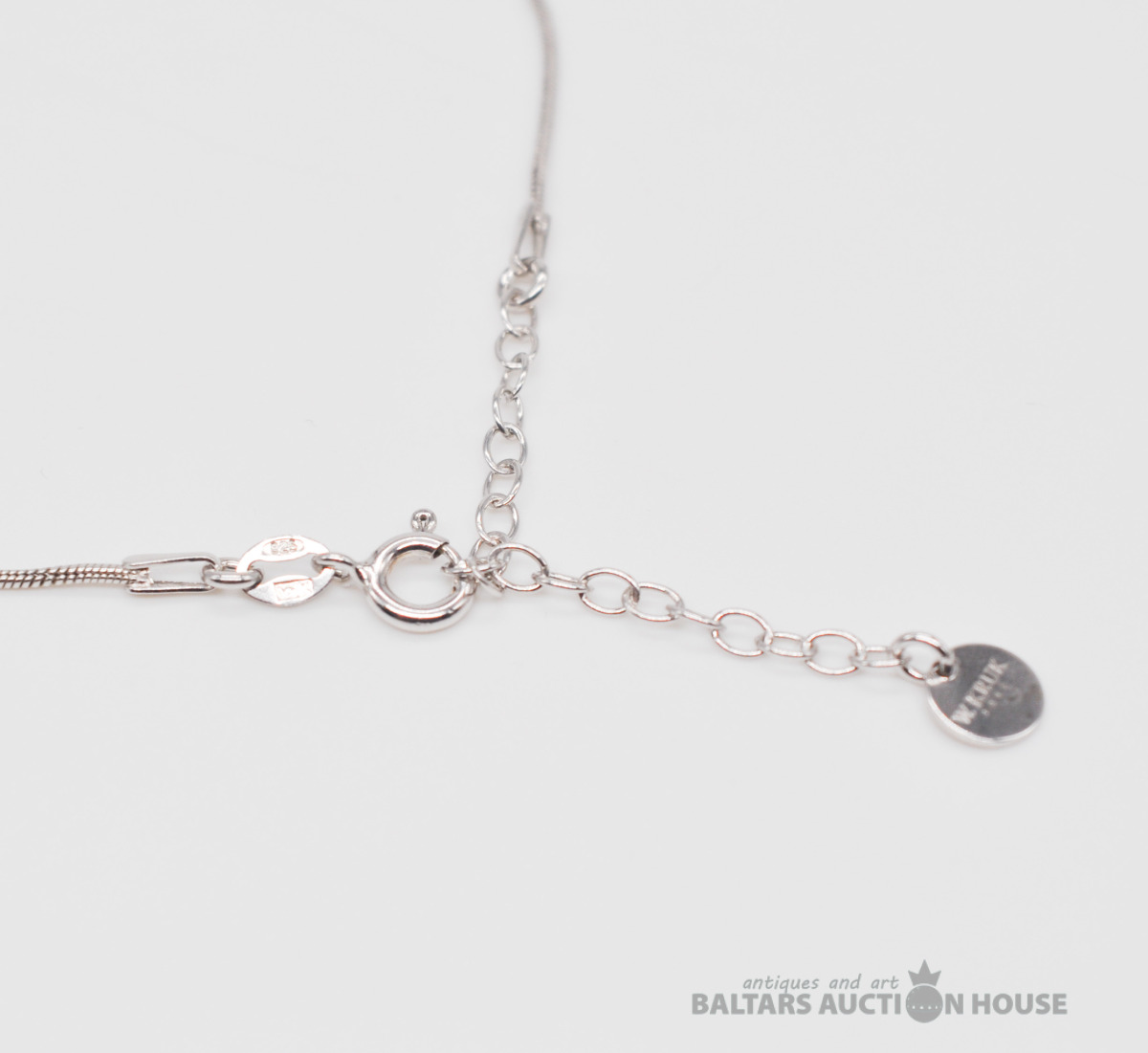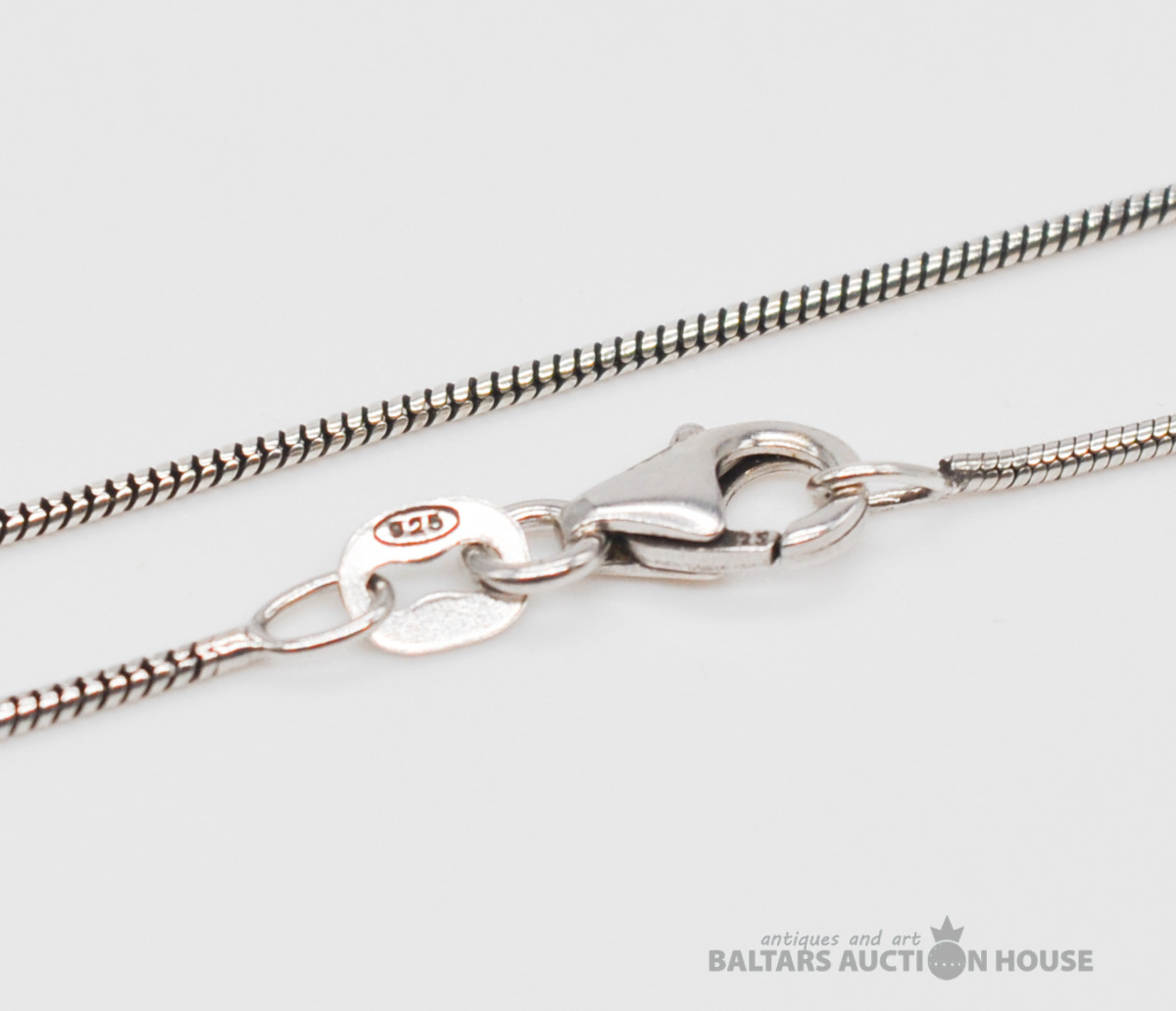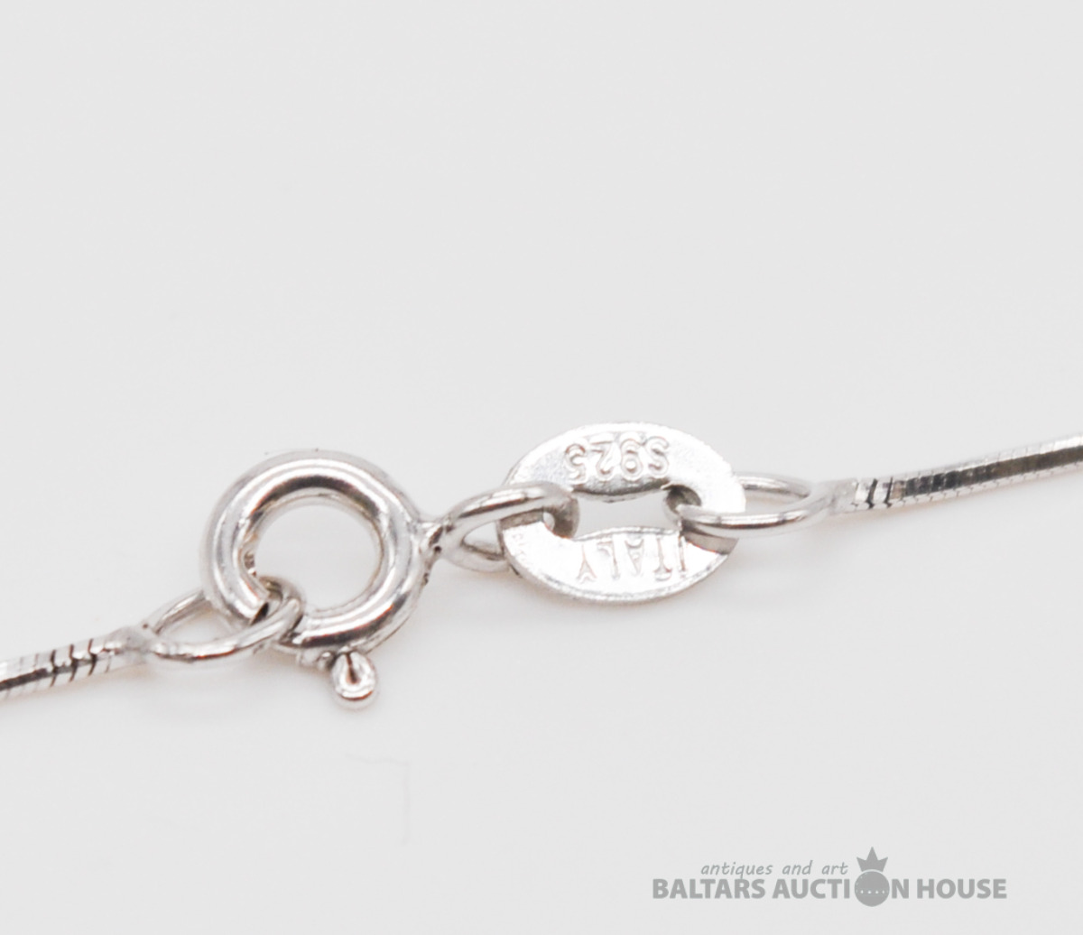 925 sudraba kaklarota ar akmens piekariņu. Garums 40 cm. Svars bez piekariņa 1.9 grami.