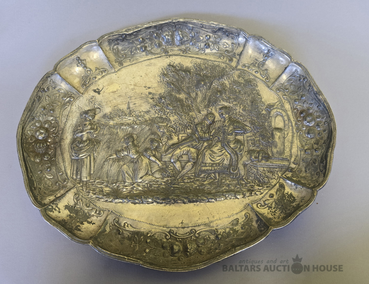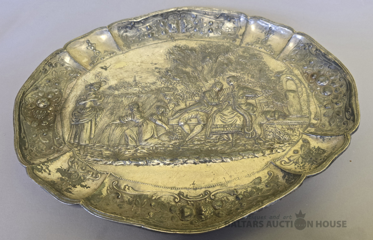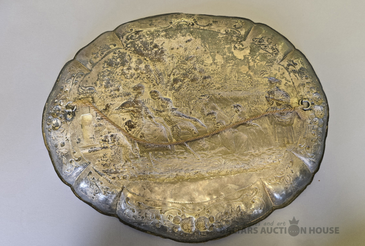 Dekoratīvs sienas šķīvis -paplãte.19 gs.Attēlota muižnieku dzīve.45x37 cm.