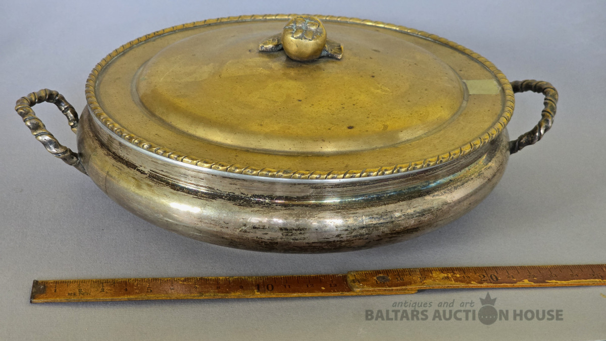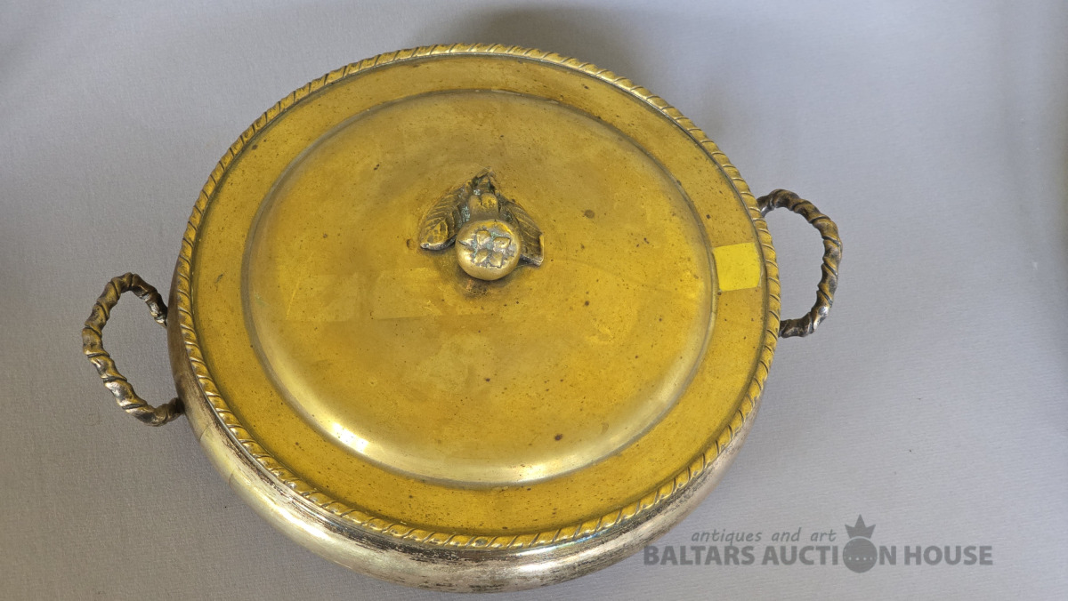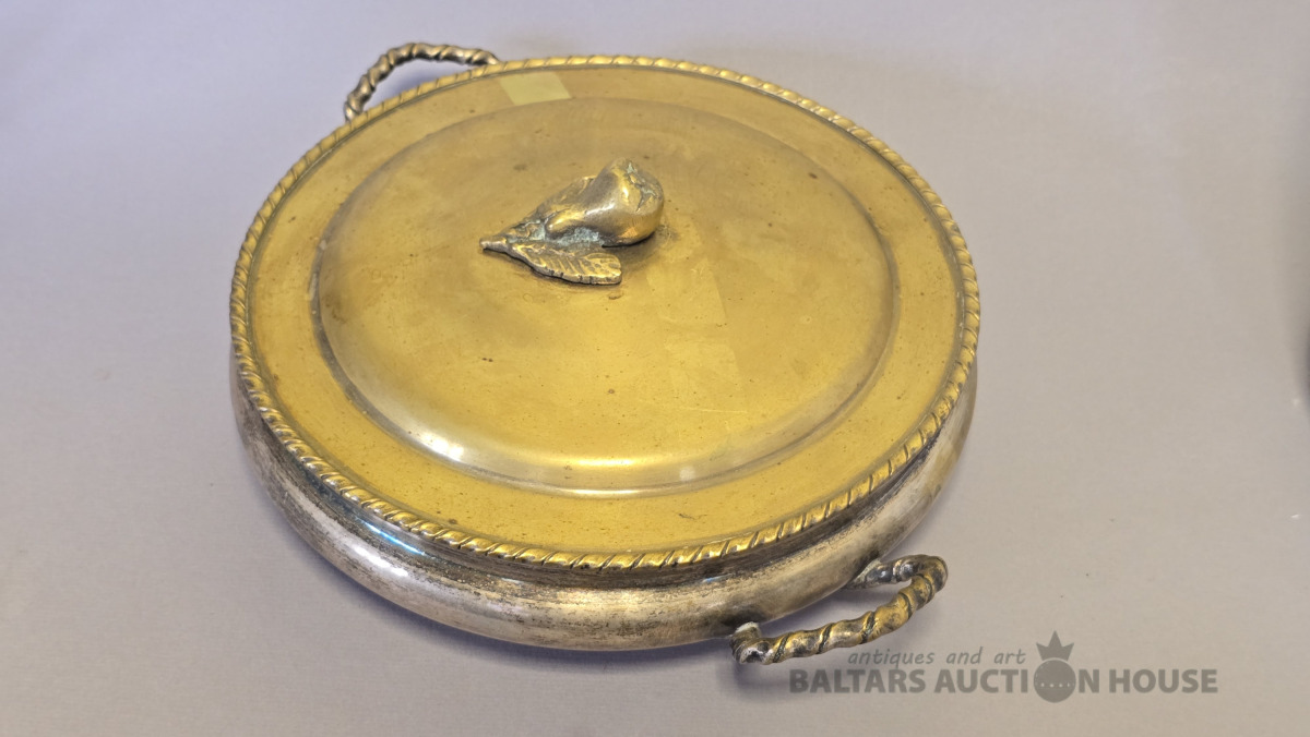 Izsmalcināts 19. gs. angļu muižas galda servējamais mērces-desertu trauks..Sudraba-zelta tonis.