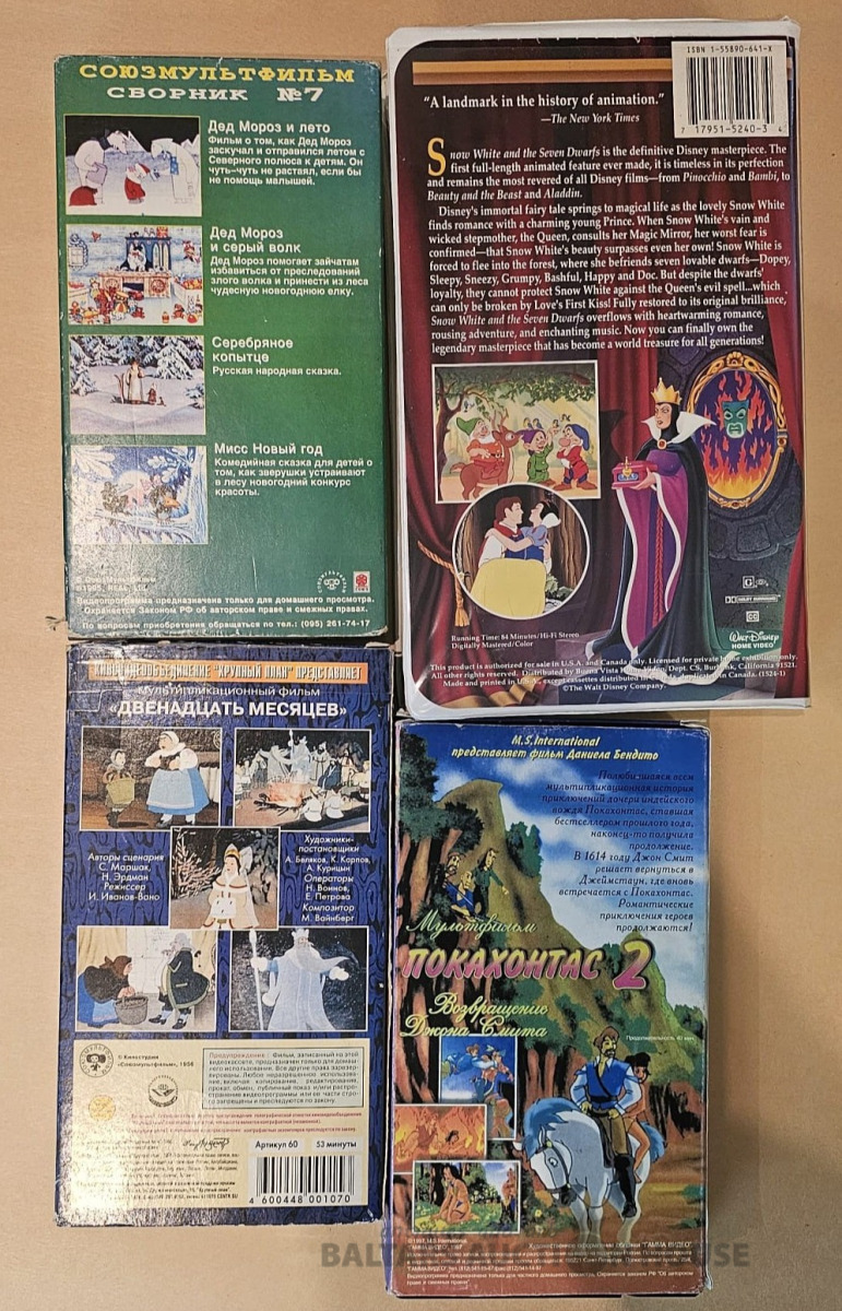 4 VHS kasetes ar dažādiem multfilmām, oriģinālie ieraksti, ļoti labs stāvoklis