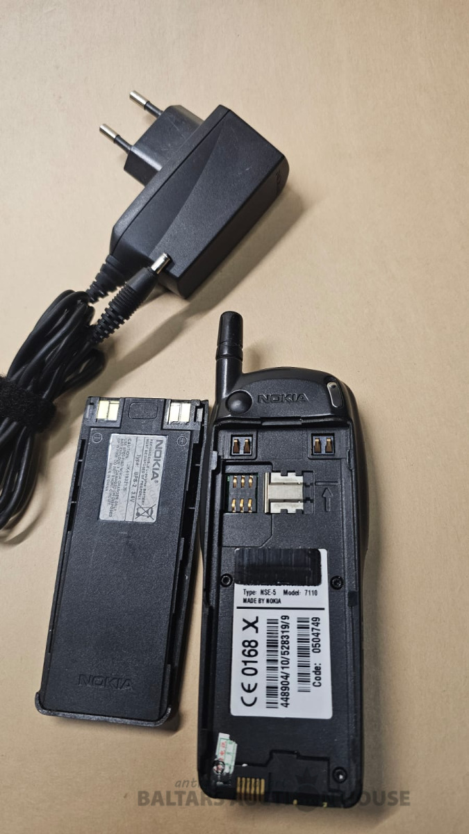 Kollekcijai, Retro mobilais telefons NOKIA 8110 (1996.g.), viens no pirmajiem stilīgiem , tā saucamais "Banāns". ka Filma MATRICA, Strada!!, bet komplekta iet tikai auto lādētājs. ir mazs defekts korpusam. skat. foto.
