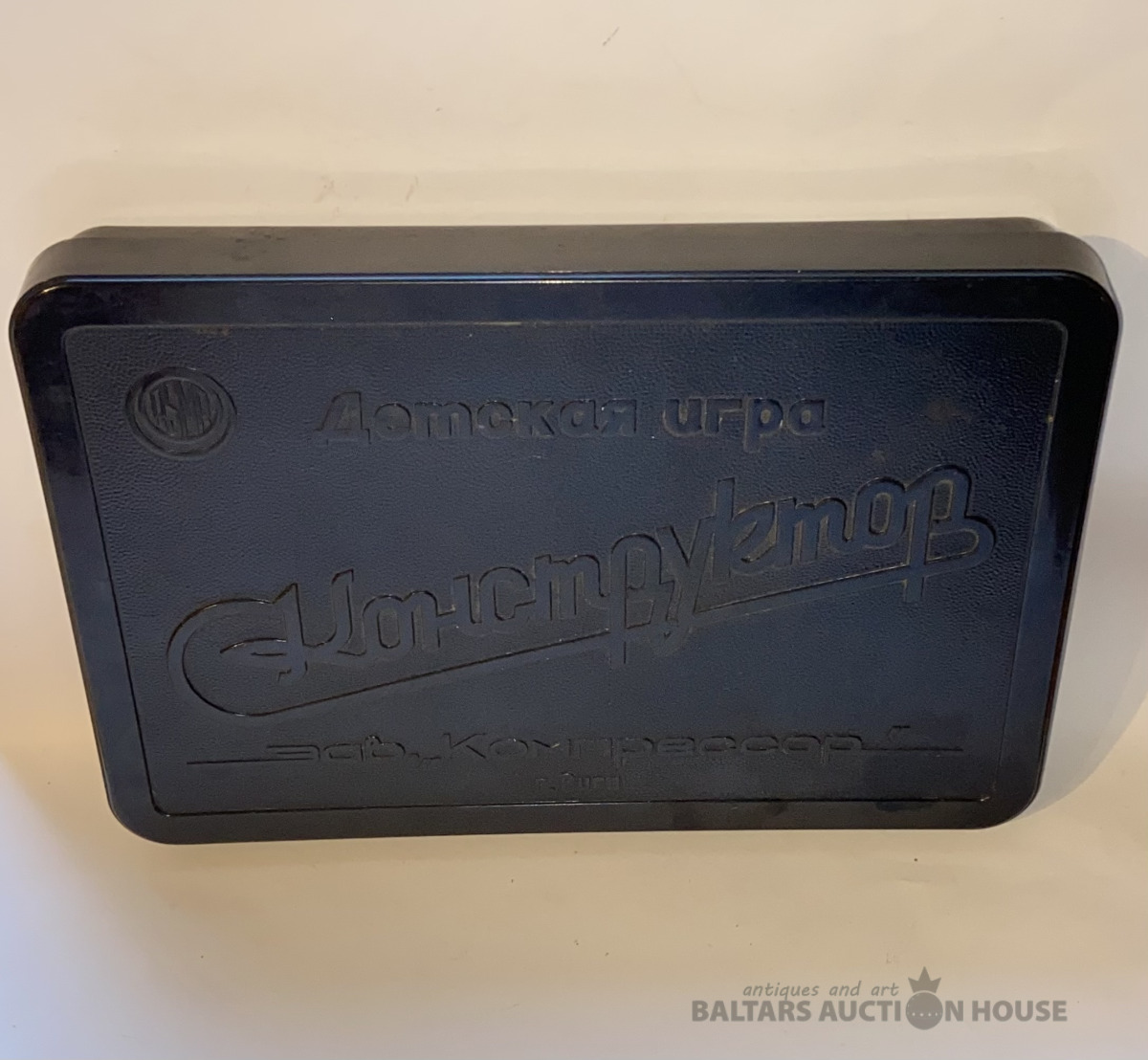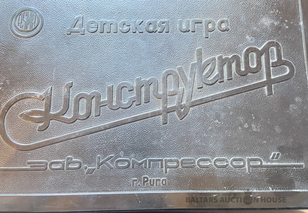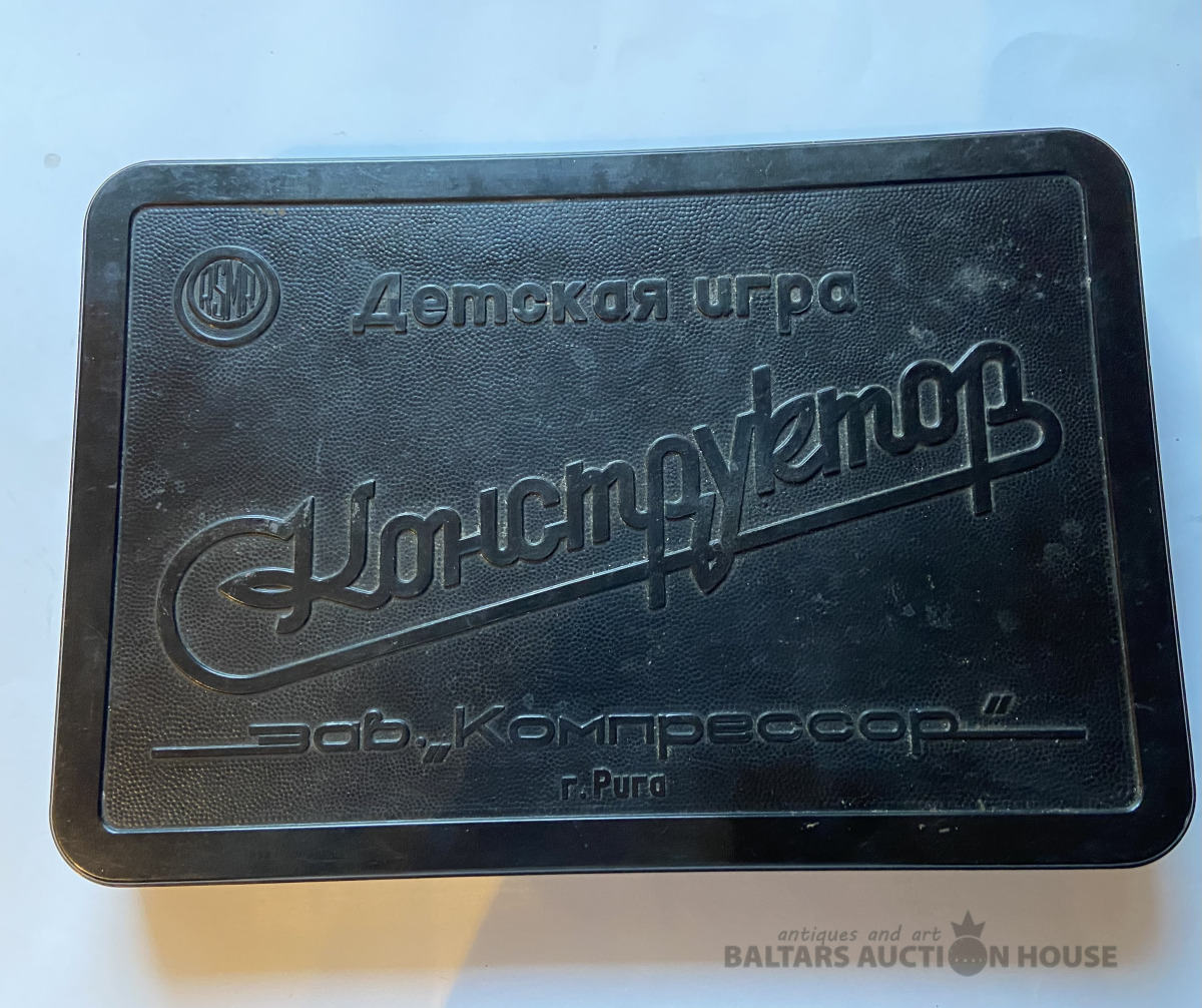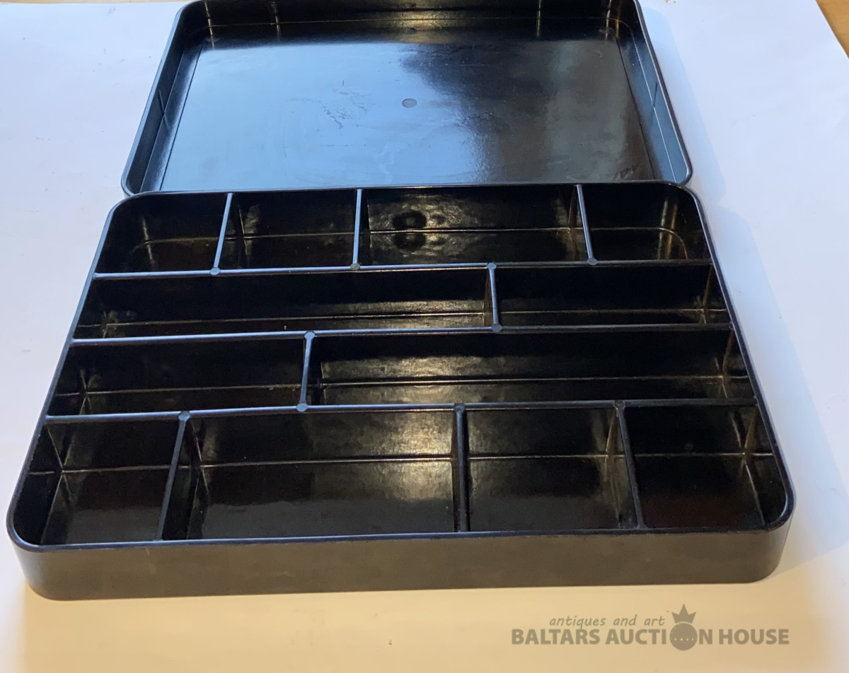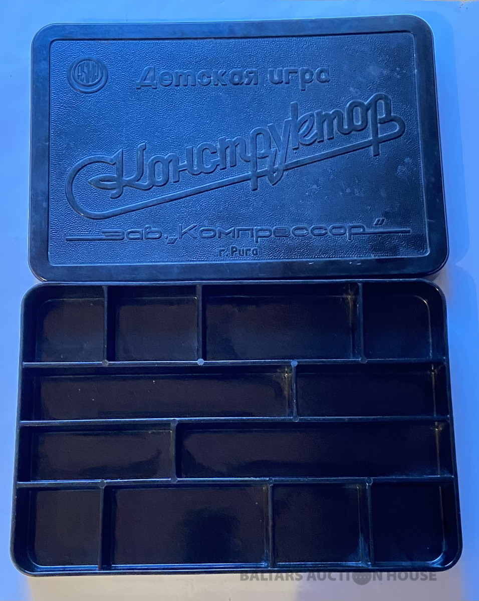 Reta bakelīta kārba no bērnu spēles KONSTRUKTORS . Rūpnīca "KOMPRESSOR" Rīga. Izmērs : 31 cm x 21 cm , H=4 cm.