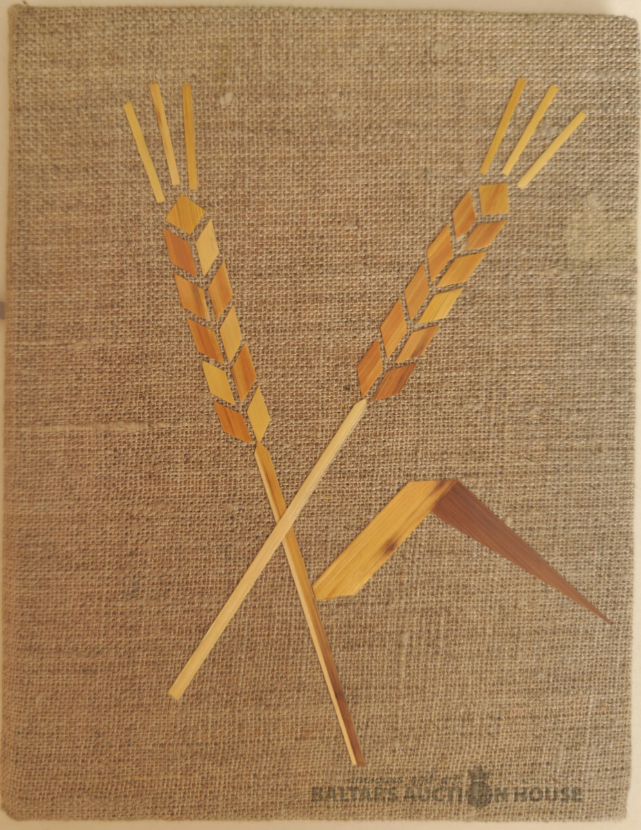 Lina dokumentu vāki ar dzintaru un zāles stiebru inhrustāciju.
