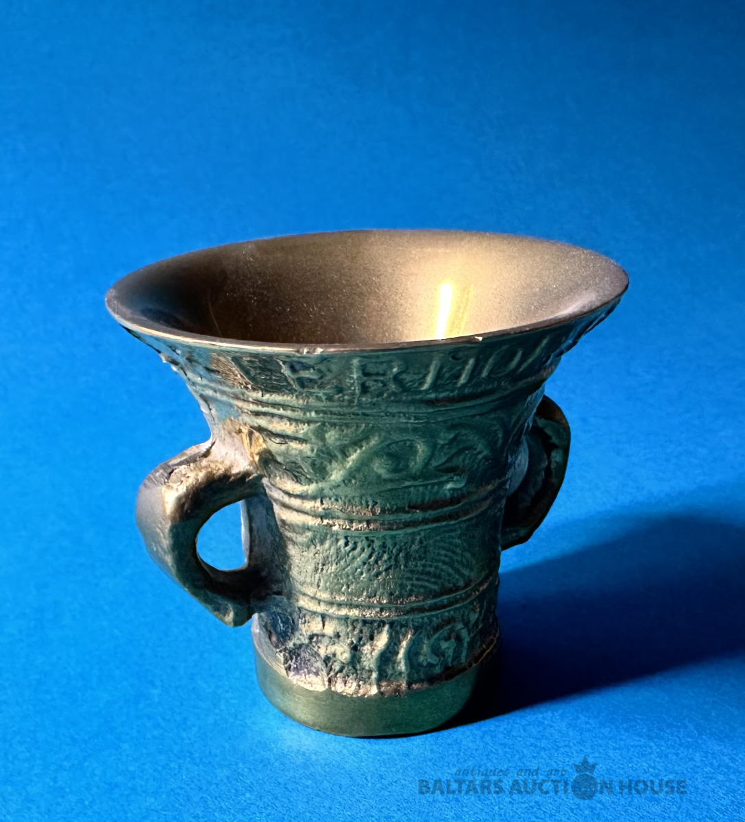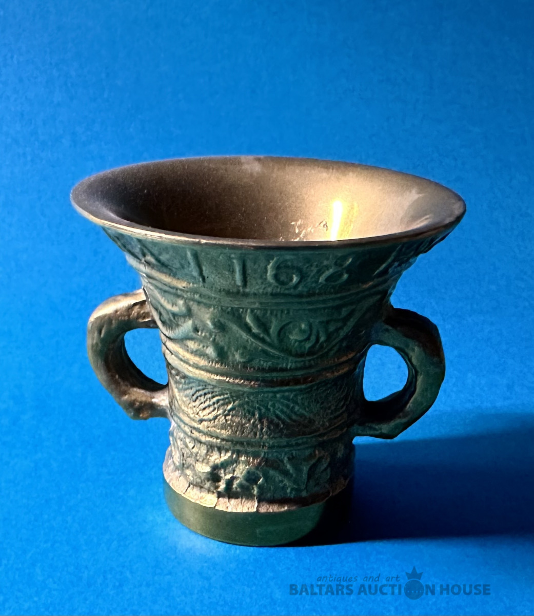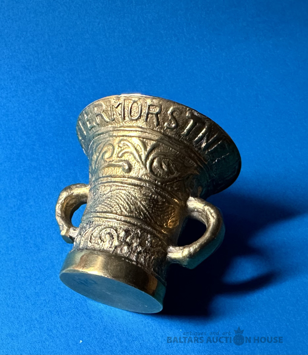 Miezeris produktu smalcināšanai, bronzas lējums, svars 0.48 kg, augstums 7 cm.