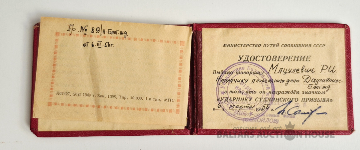 Ударник Сталинского призыва. Документ.