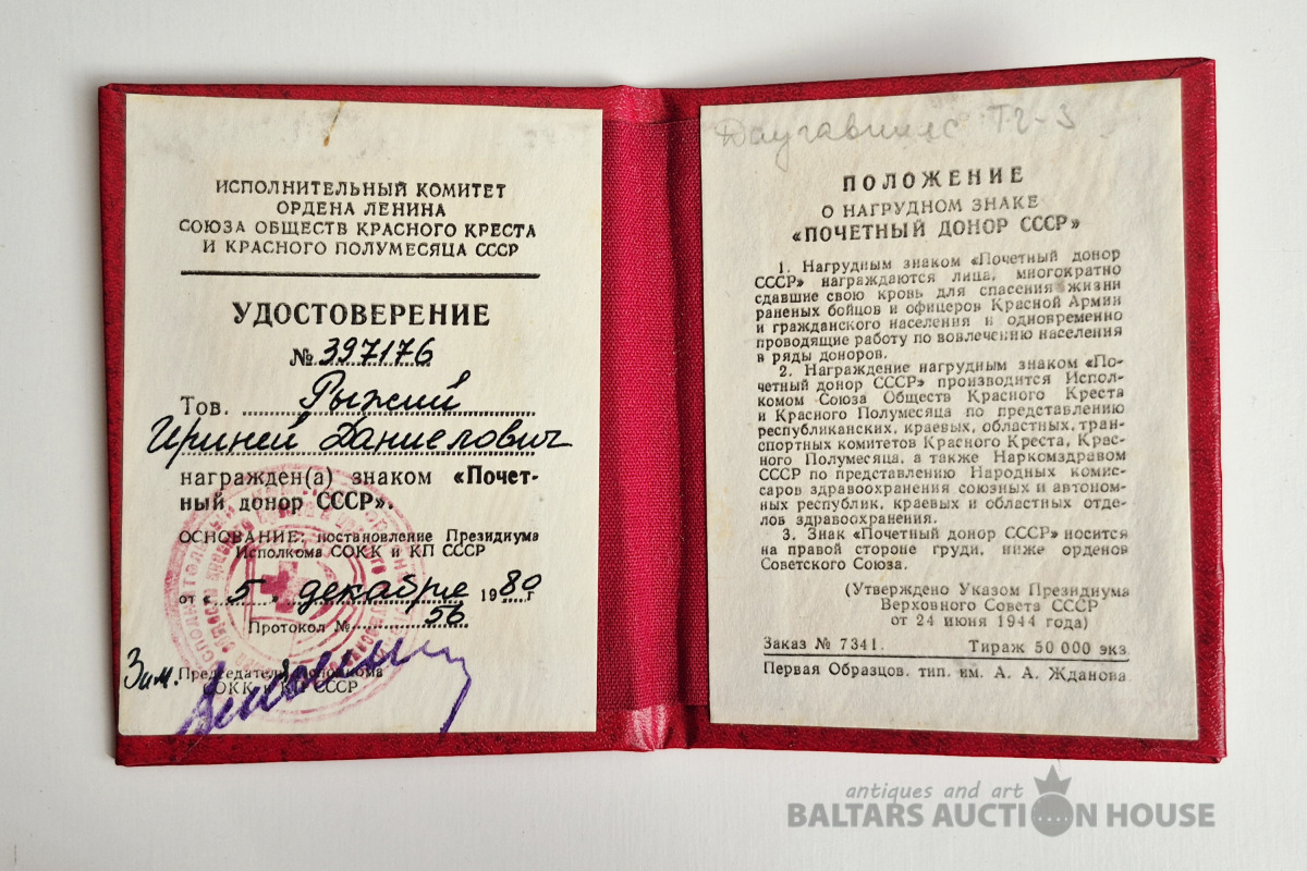 Почётный донор СССР. Документ.