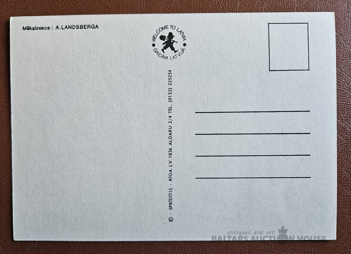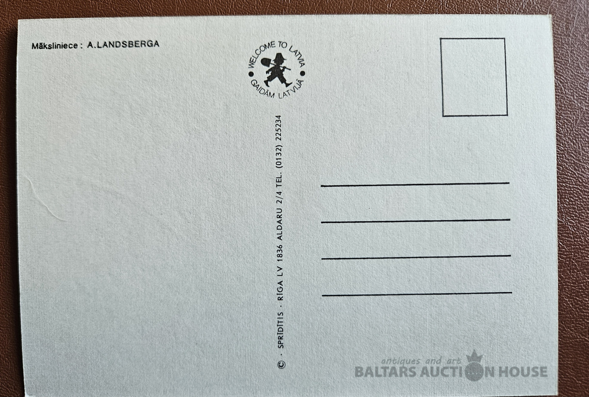 Pastkarte . Gaidām Latvijā. Māksliniece A.Landsberga.