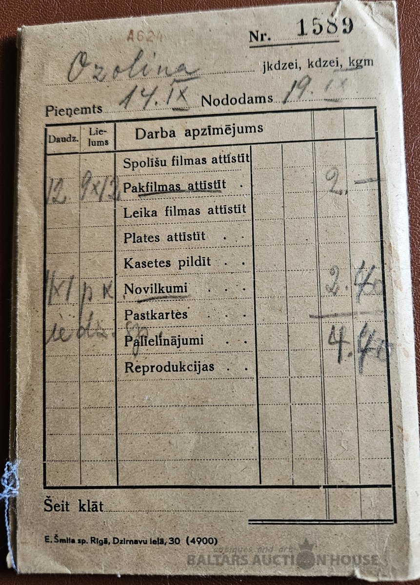 A.Cālitis foto un kino aparātu tirgotava .Foto negatīvi.