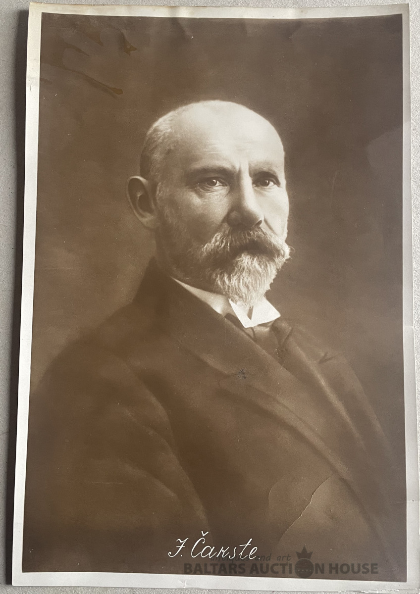 Liels foto 29,5x19,5 cm Latvijas Prezidents J. Čakste , 1920.-tie g. , kreisajā augšējā stūrī līmes ? pēdas