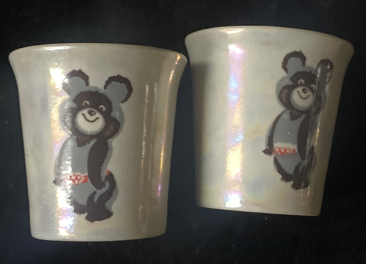Glāzītes OLIMPISKAIS LĀCIS, pāris, porcelāns, h=5,6 cm, priekšmeti NAV mazgāti !!!