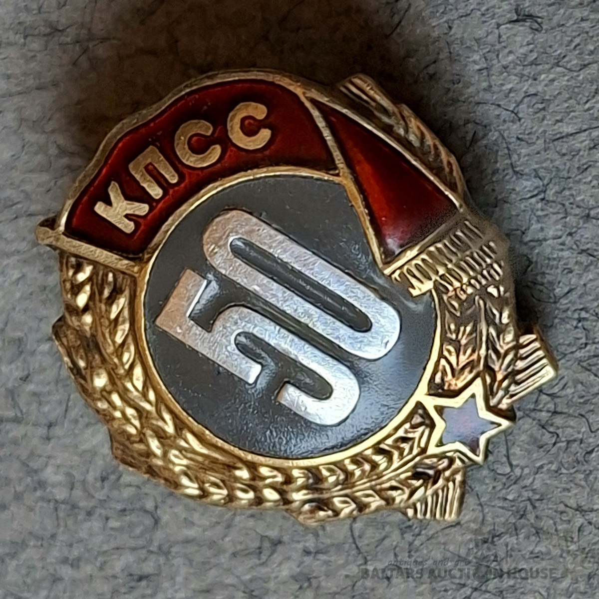 Miniatūra nozīmīte "50 gadi piederības PSKP (Padomju Savienības Komunistiskajai partijai)". SUDRABS.