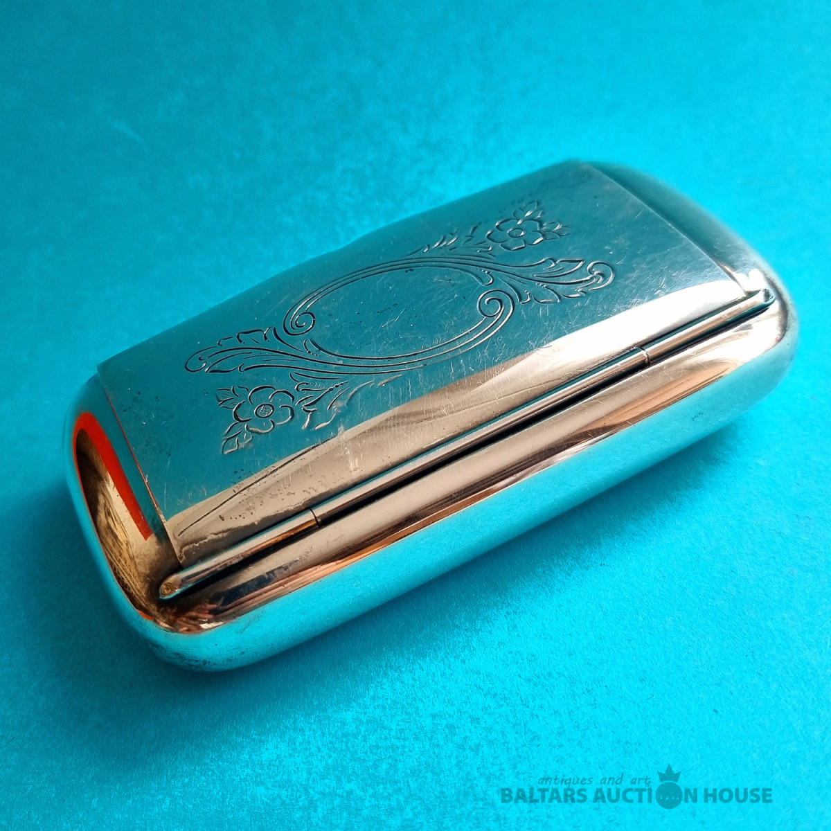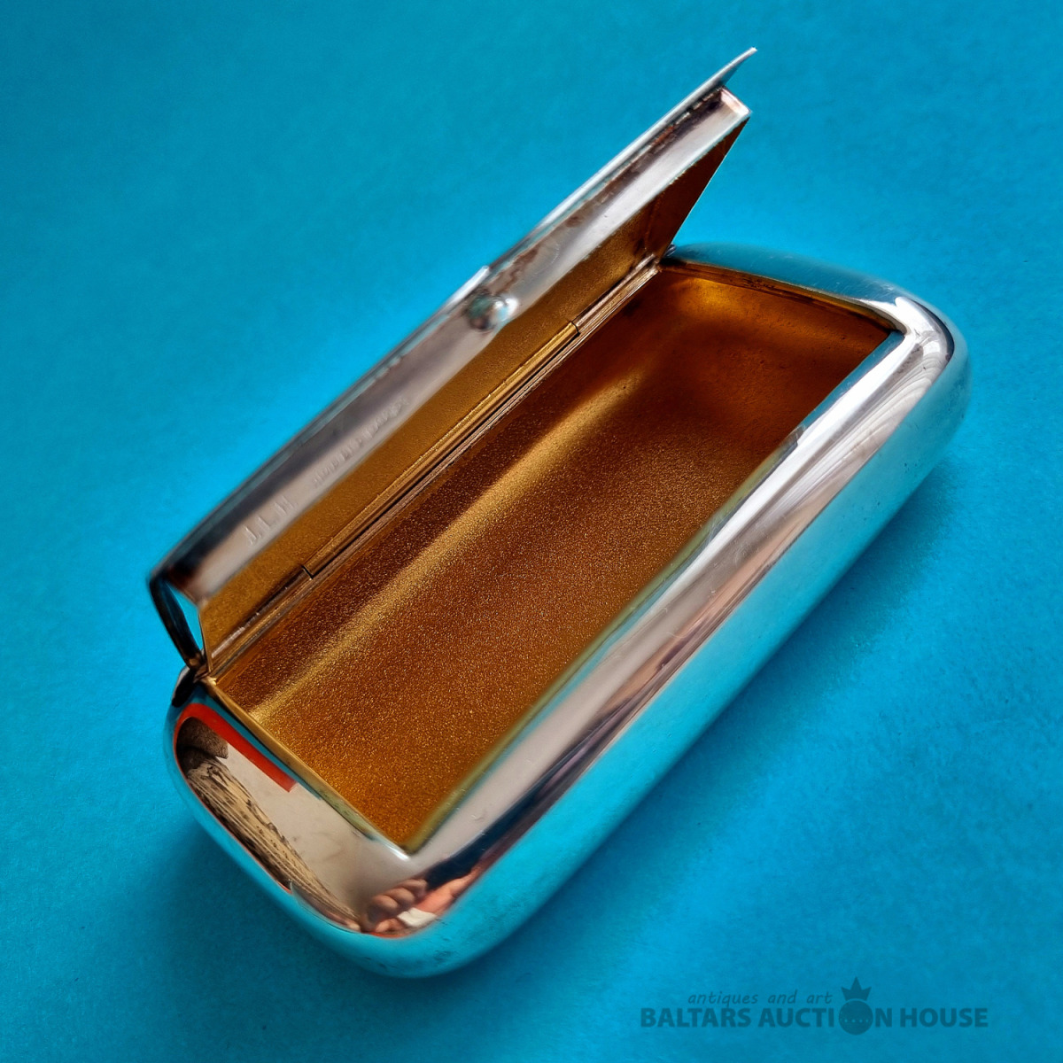 Skaista šņaucamā tabakas kastīte. J.L.H. Prima ALP Import. Zviedrija. Izmērs: 10 cm x 5,5 cm x 2 cm.