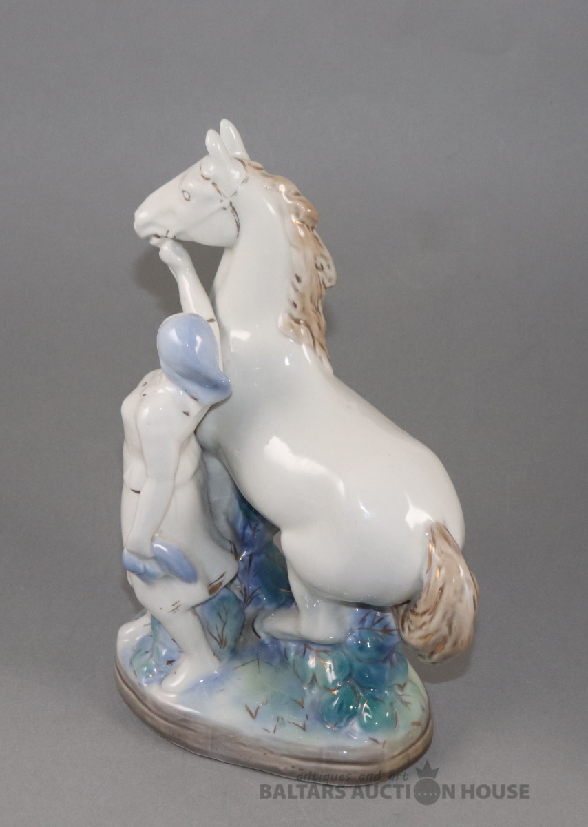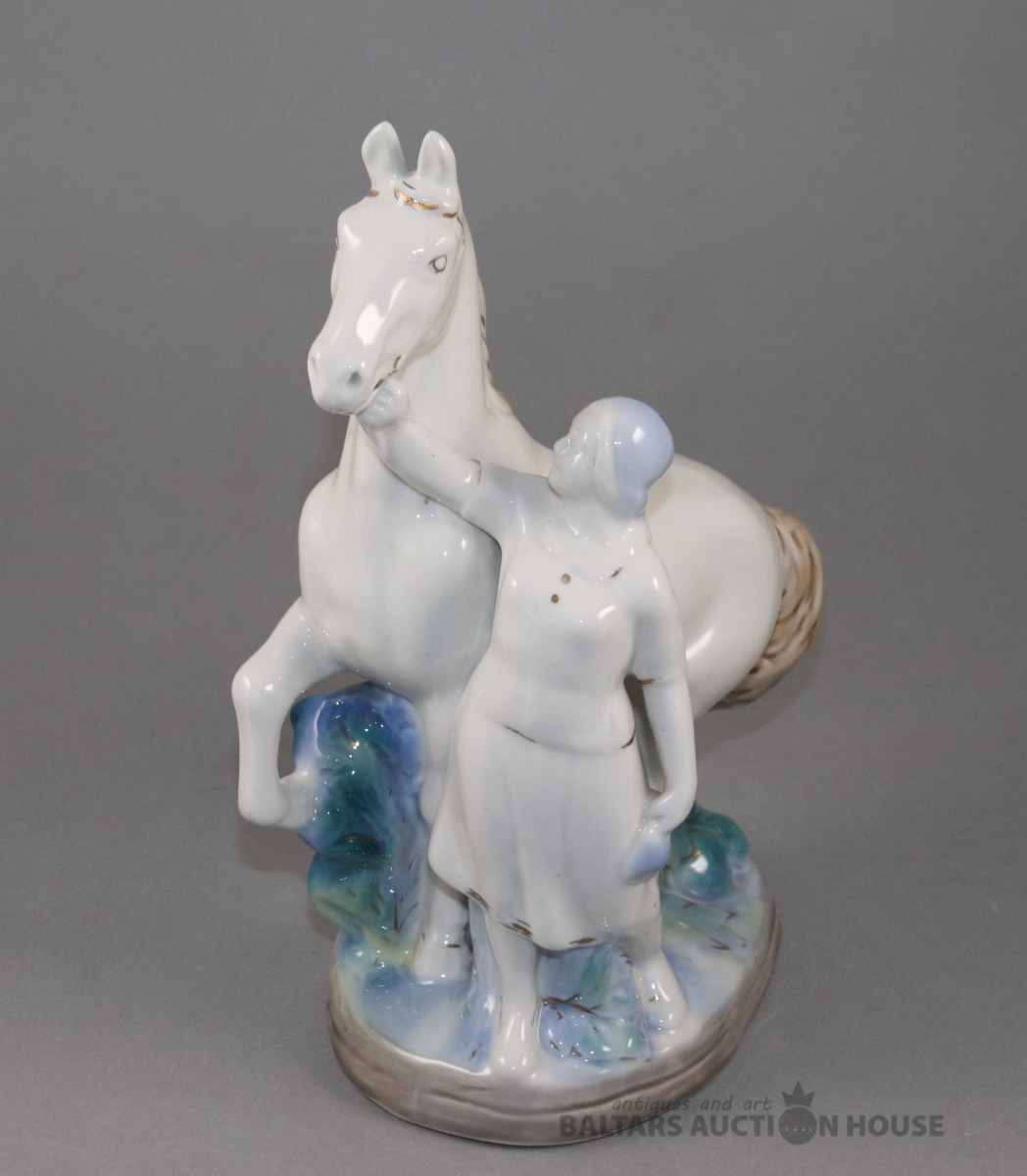 Figūra MEITENE AR ZIRGU. Porcelāns, Gžeļa. h=27 cm. Autors Бессарабова Н.И. Modelis 1958. - 1960. g.