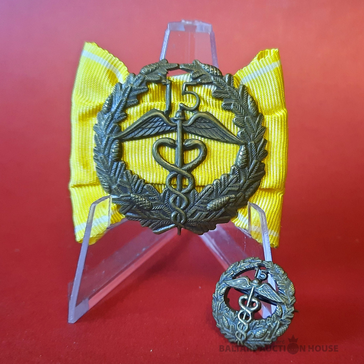 15 gadu dienesta nozīmīte Tirdzniecības un rūpniecības palātā (muita?) + miniatūra nozīmīte. Somija.