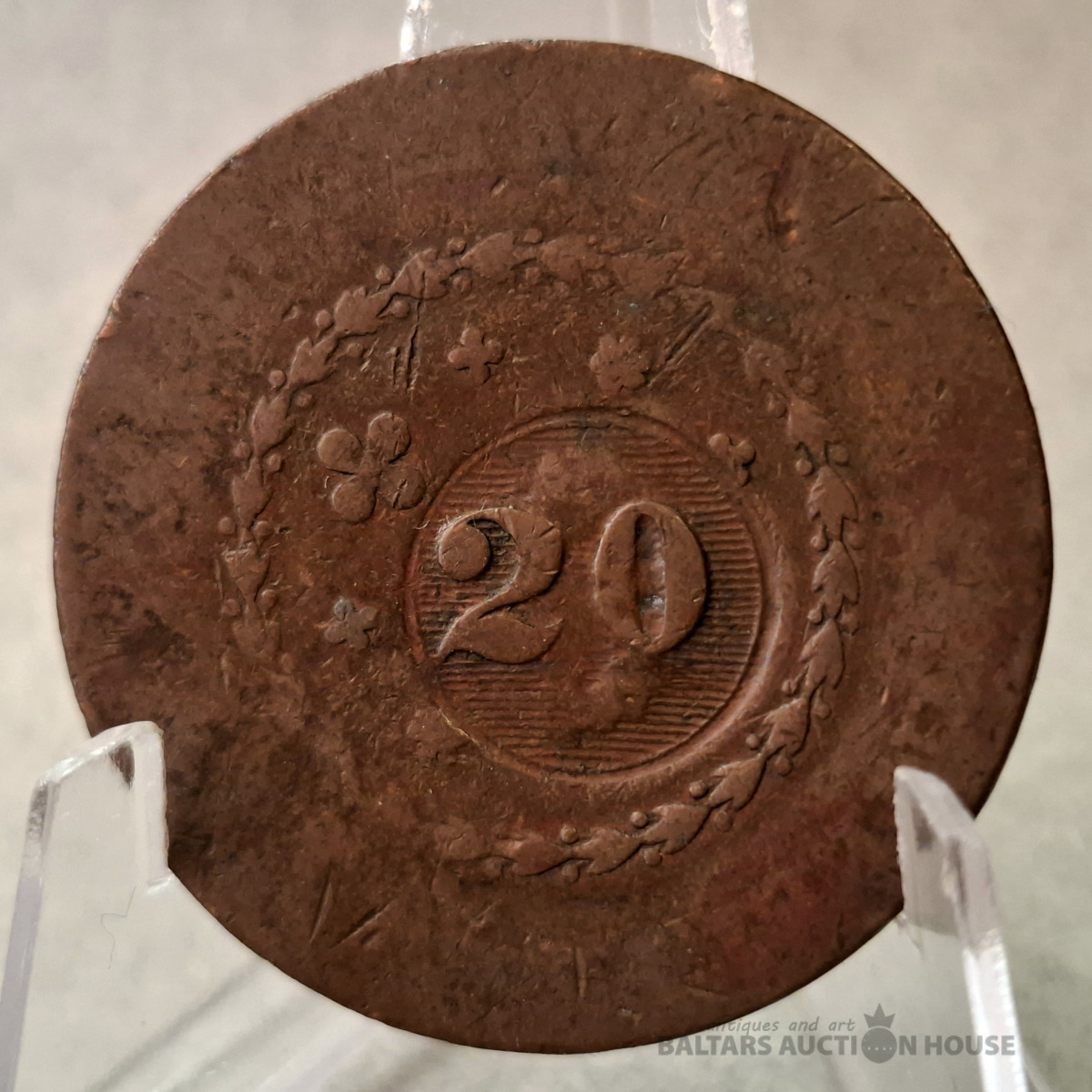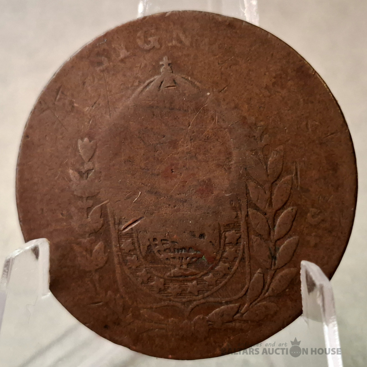 Brazīlijas vara monēta, kuras nominālvērtība ir 40 realu. Paredzamais izlaiduma gads: 1823.–1831. g.