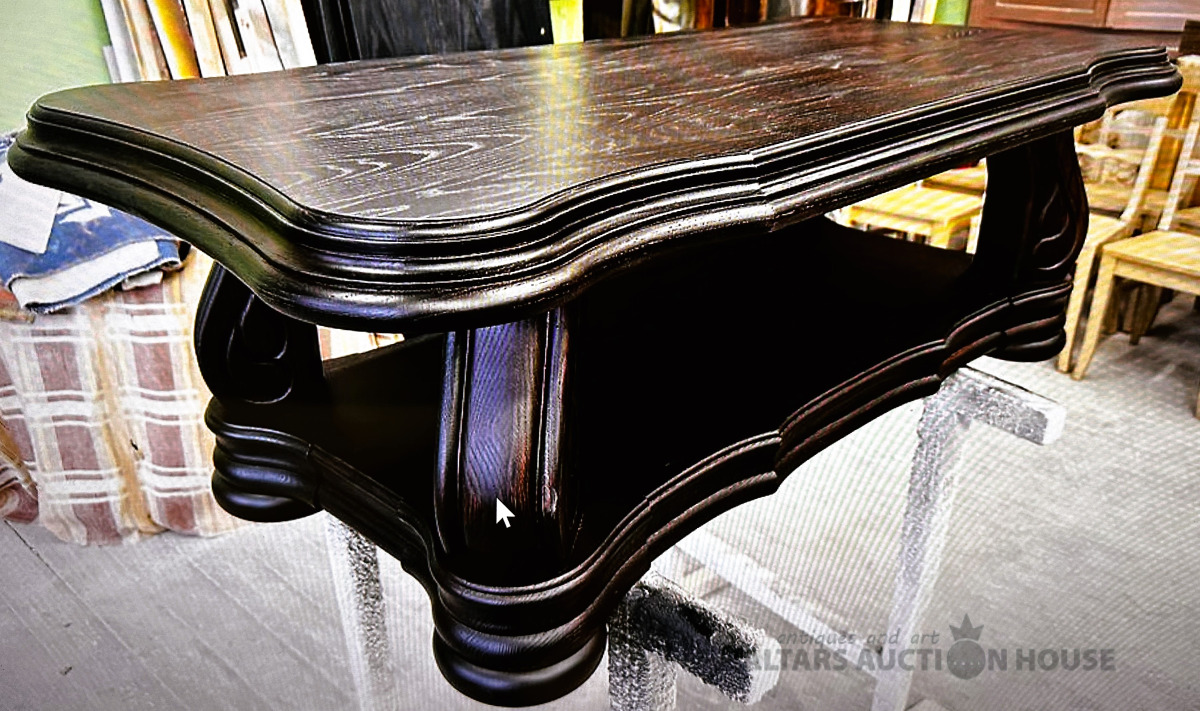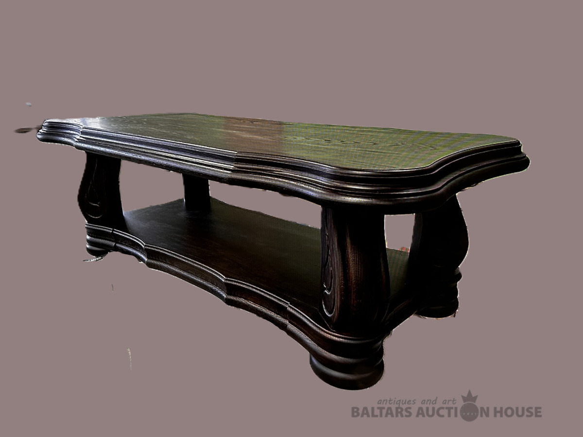 masīvs ozolkoka KAFIJAS GALDIŅŠ, roku darbs, izgatavots Latvijā pirms apt. pirms 40 gadiem, sūtīts eksportam uz Norvēģiju, saglabājies ideāls, pirms 2 gadiem atgriezies Latvijā, atjaunots jaunvērtības kvalitātē, virsma 70x140 cm, papildus apstrāde ar ļoti izturīgu profesionālo parketa laku. Augstums ap 50 cm. Vērtība ap 700-800 EUR.