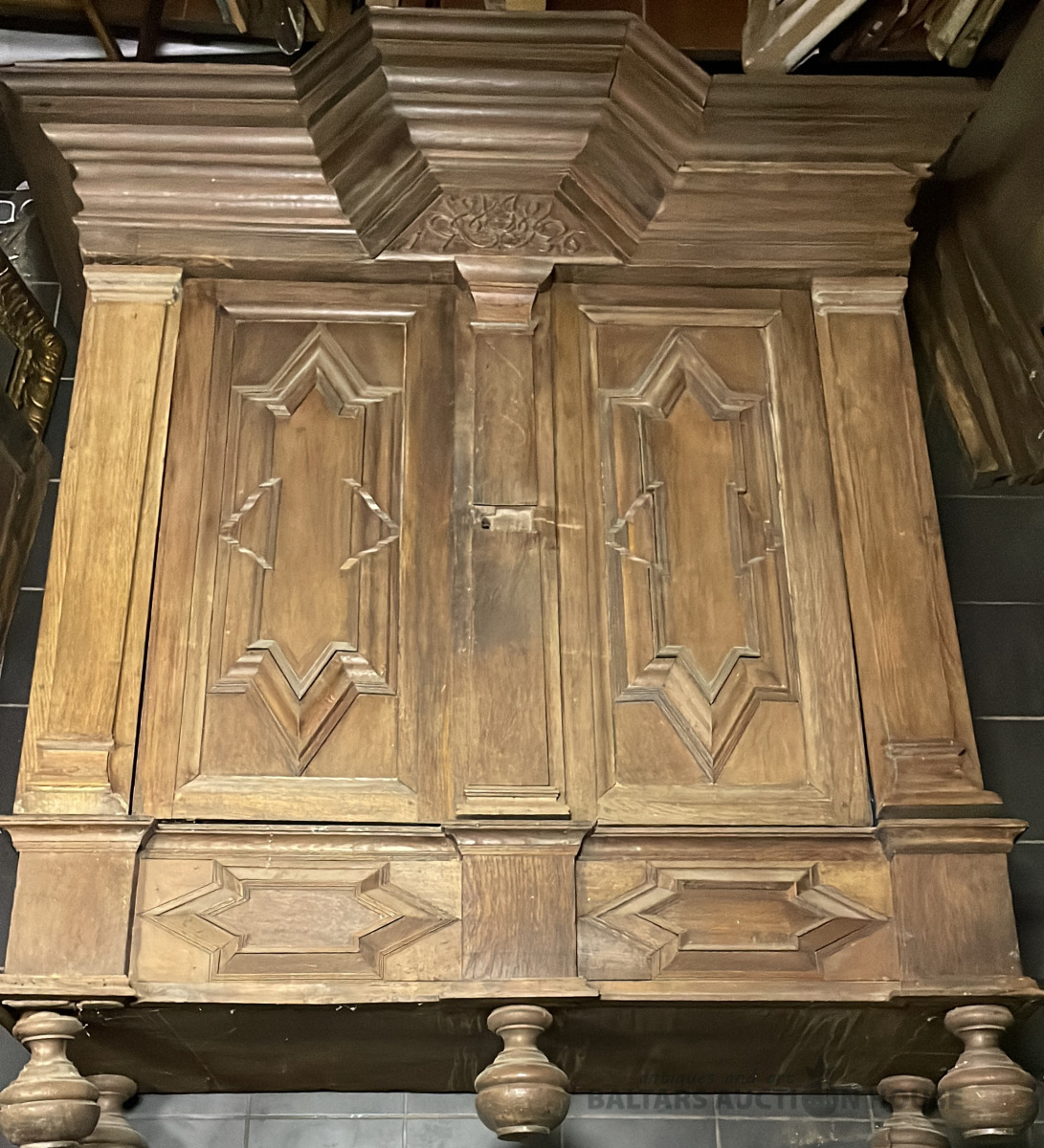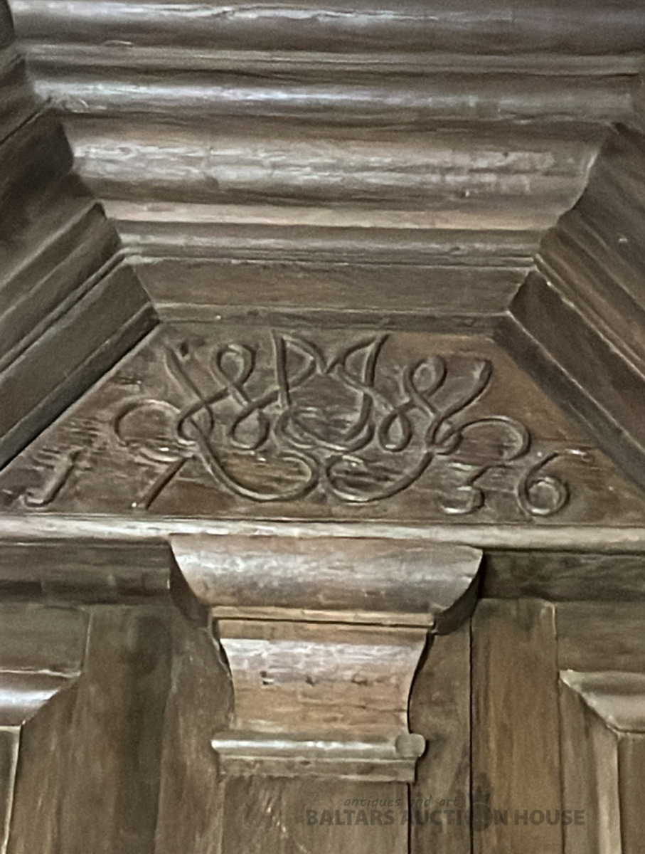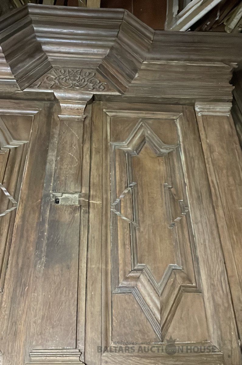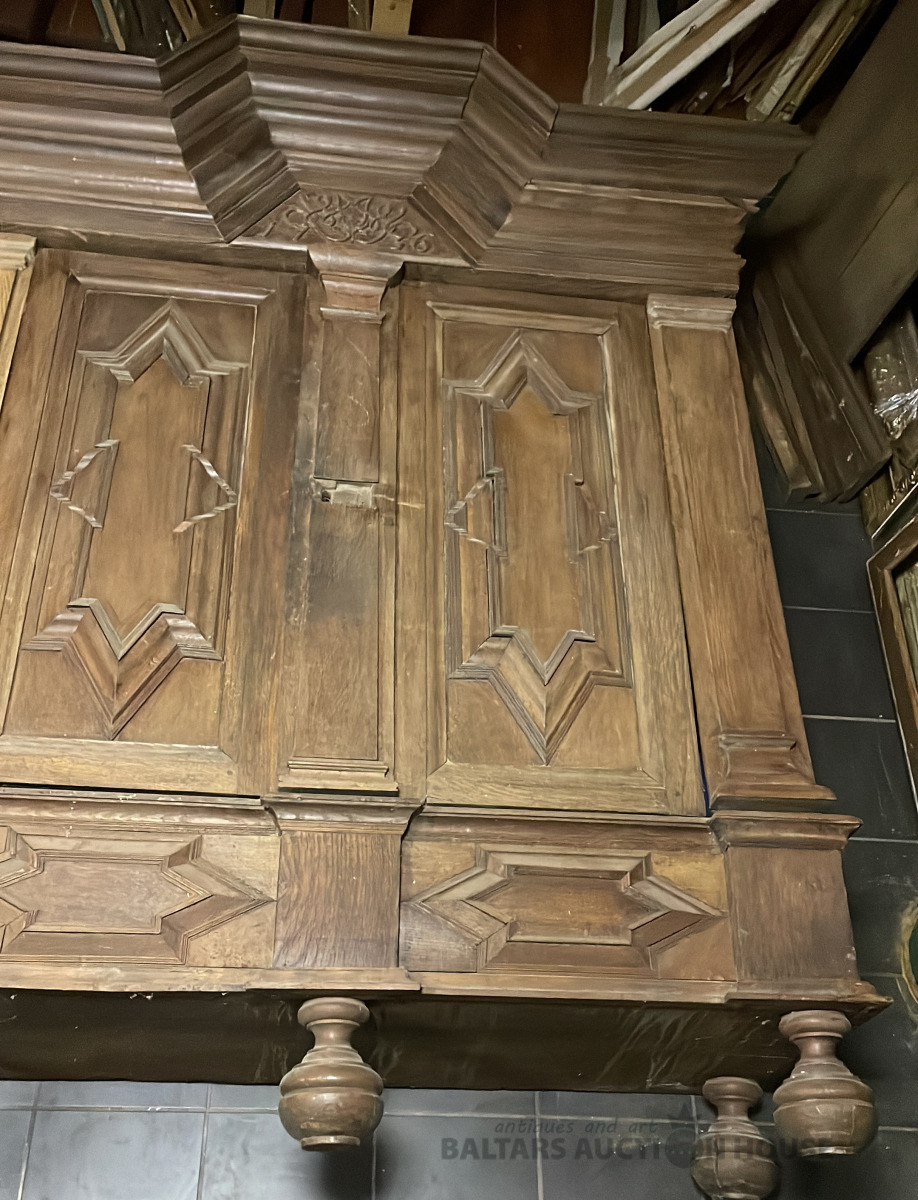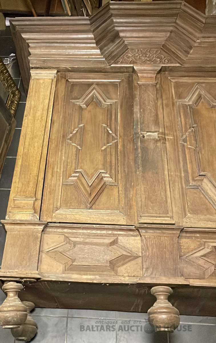 Liels 1736.-tā gada BAROKA STILA DRĒBJU SKAPIS, koks. Izcelsme; kāda no Latvijas muižām Bauskas- Jelgavas pusē. Var pārbūvēt par grāmatu skapi, atslēgas nav