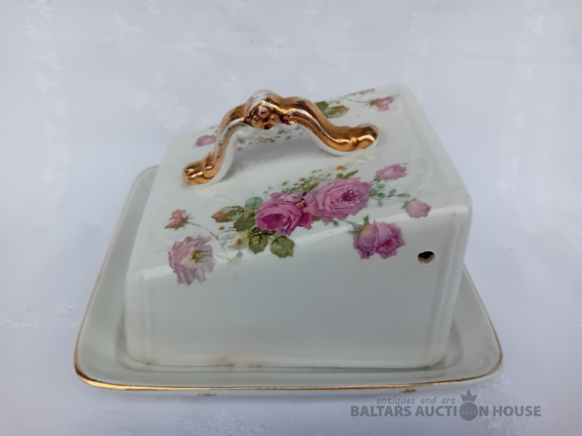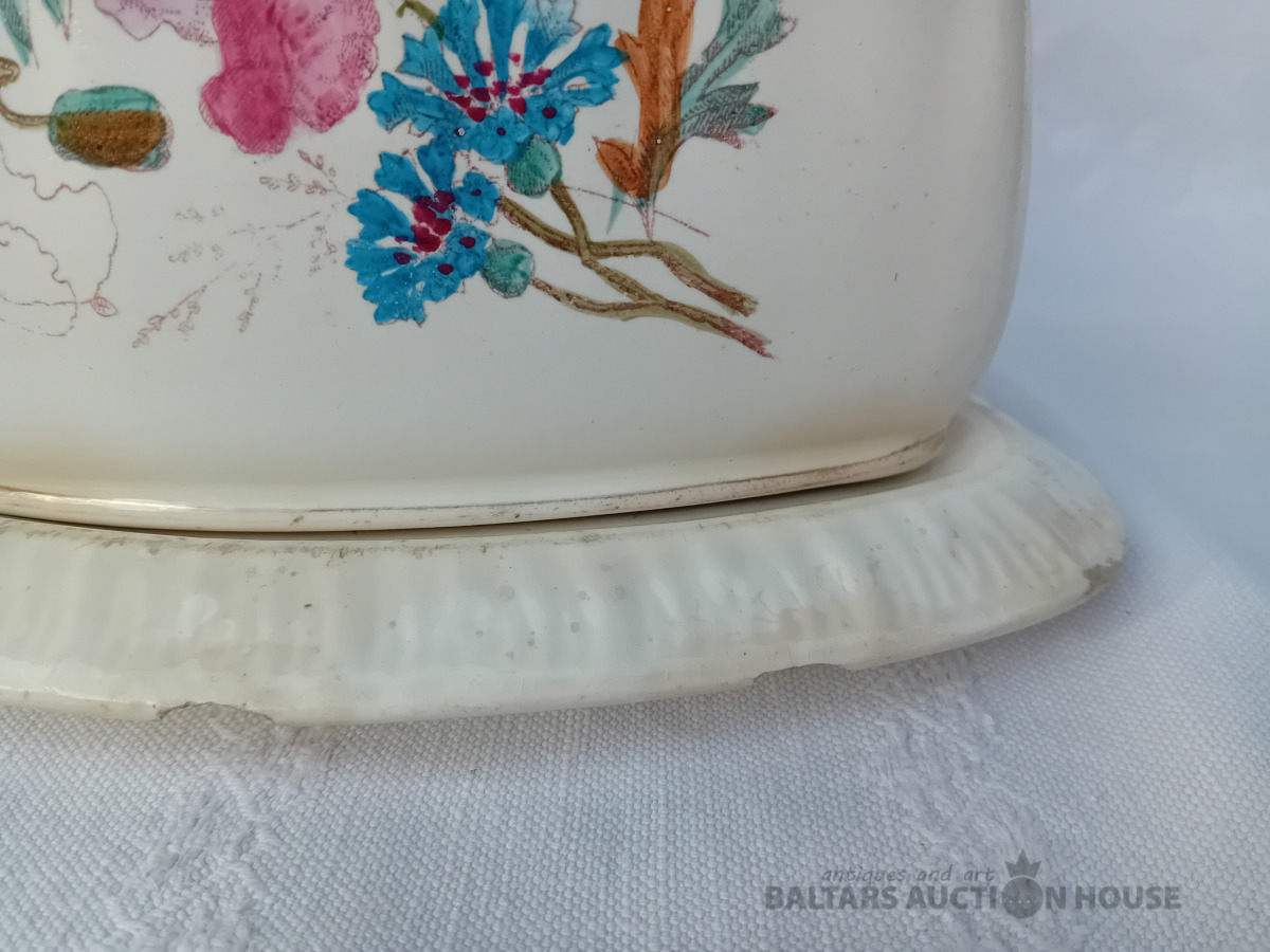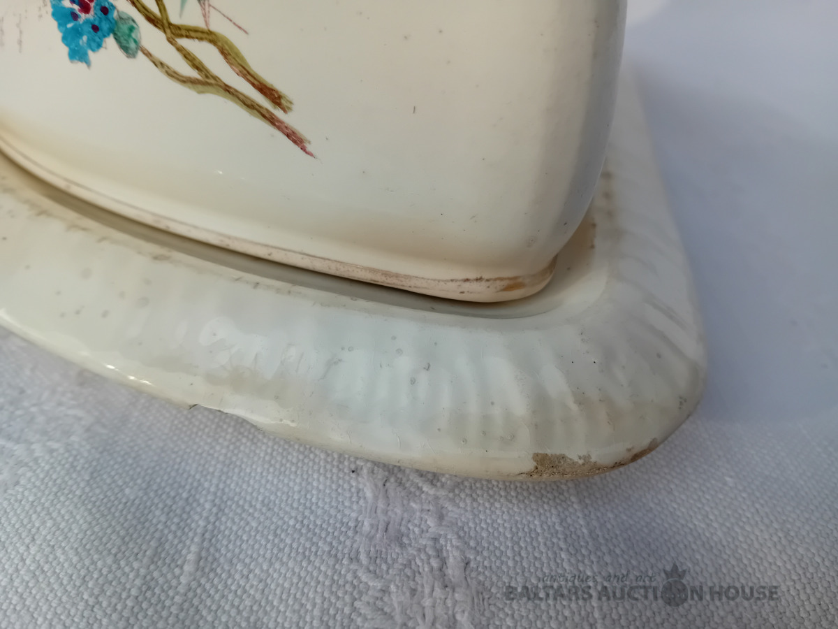 Siera/sviesta trauks, fajanss, Anglija,19*17 cm, 9,5 cm h, Nelieli bojājumi glazūrā, zelta nodilums.