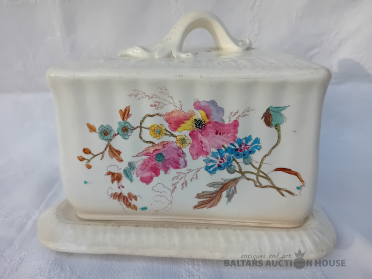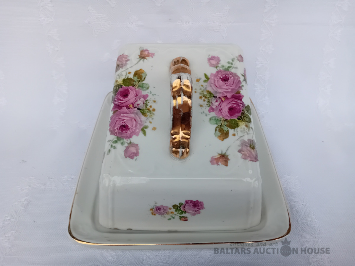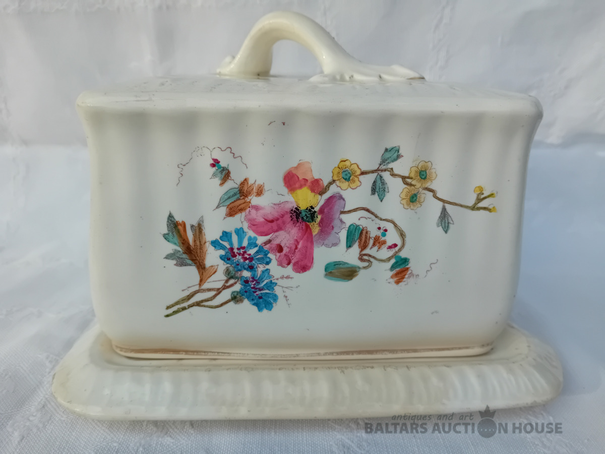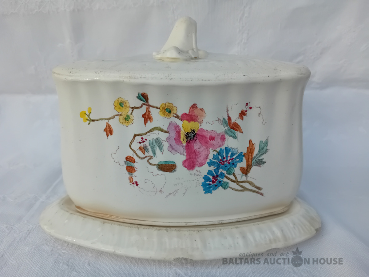 Siera/sviesta trauks, fajanss, Anglija,19*17 cm, 9,5 cm h, Nelieli bojājumi glazūrā, zelta nodilums.