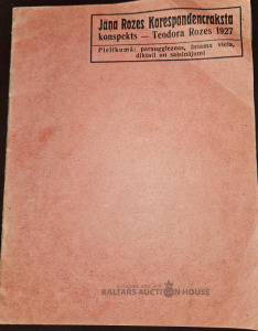 Jāņa Rozes korespondencraksta konspekts. -Teodors Rozes 1927 gads.