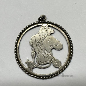 Kulons VĒRSIS, roku darbs, gravēts ar štiheli, 1 eksemplāra roku darbs, PSRS, 1990-tie gadi, melhiors, diametrs 31 mm.