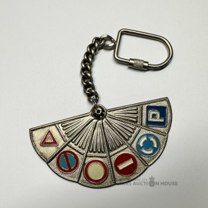 Atslēgu piekars VĒDEKLIS ar auto ceļazīmēm, PSRS, 1960-70.-tie gadi, melhiors, aukstā emalja, bez defektiem