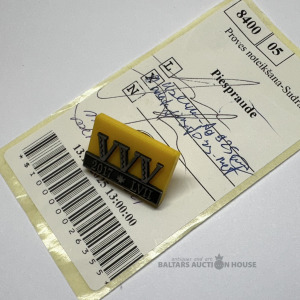 Vidusskolas žetons, sudrabs 925, vēsturiskais skolas žetons ar dzintara pamatnes imitāciju un sudraba uzliku, adatiņa aimugurē galvanizēts misiņš, Proves biroja pārbaude un atzinums, prove netika uzspiesta, uz plastmasas provi neuzlika.