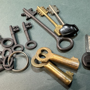 Dažādas atslēdziņas, senās, melnais metāls bez rūsām, seifa atslēgas, mūsdienīgas, 3 gb bronza, kopā 13 gb., kopā 300 grami.