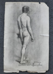 Teodors Debners 1875-1942 (Theodor Doebner). Akts. Papīrs/Zīmulis. Plīsumi, defekti. 38x59 cm. https://lv.wikipedia.org/wiki/Teodors_Debners_(gleznot%C4%81js)