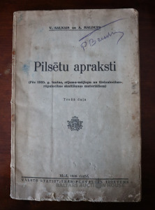 | Nosaukums | V. Salnais un A. Maldups "Pilsētu apraksti (Pēc 1935. tautas, sējumu-mājlopu un tirdzniecibas- rupniecības skaitīšanas materiäliem)", trešā daļa, 1936 |