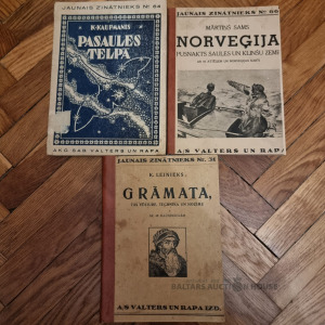 | Nosaukums | K. Kaufmanis "Pasaules telpā", Mārtiņš Sams "Norvēģija, pusnakts, saules un klinšu zeme" un K. Lejnieks "Grāmata, tās vēsture, technika un nozīme" |