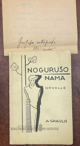 Grāmata NOGURUŠO NAMĀ, 1934.g., N. Strunkes vāks+ lapiņa ar vāji saredzamu Arvīda Griguļa autogrāfu