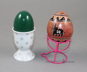 2 OLAS AR TURĒTĀJIEM. Zaļā - porcelāna, brūnā - akmens.