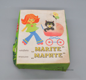 Rūpnīcas STRAUME elektro-mehāniska rotaļlieta "MĀRĪTE" Iepakojums ar netīrumu pēdām. Tehniskais stāvoklis nav zināms.