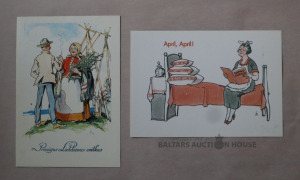 Divas pastkartes. Mākslinieks Indriķis Zeberiņš, redakcija ''MĀKSLA''. Pastkartes pilnīgi jaunas, izcilā stāvoklī.