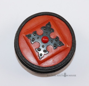 Lāde ar vāku. Ē. Priedkalns, āda, roku darbs. h=4,5 cm, d=8,7 cm