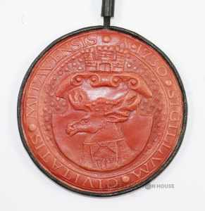 Zīmogs, d=12 cm. Ē. Priedkalns, āda, roku darbs.