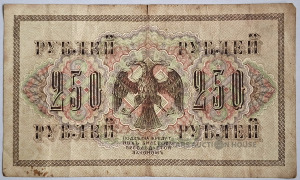 250 rubļu banknote no 1917. gada. Stāvoklis redzams fotoattēlā.