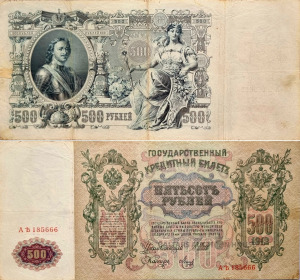 500 rubļi 1912. Vadītājs Šipovs Kasieris Metzs. Stāvoklis redzams fotoattēlā.