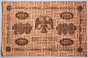 Kredītvēstule 100 rubļi, 1918. gads. Stāvoklis atbilst fotoattēlam.