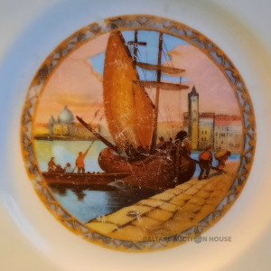 Dekoratīvs šķīvis "Buru laiva" Sab.M.S.Kuzņecov. Rigā.1920-1933 g.Stāvoklis fotoattēlā.
