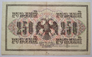 250 rubļu banknote, ko izlaida Krievijas Pagaidu valdība 1917. gadā.