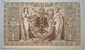 Vācijas impērijas 1000 marku banknote, kas izlaista 1910. gada 21. aprīlī.