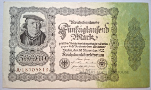 Vācijas impērijas banknote (Reiha banknote) ar nominālvērtību 50 000 marku.