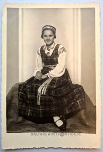 Studijas foto. Sieviete tautas tērpā. Latvija. 1930. gadi.