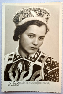 Studijas foto. Sieviete tautas tērpā. Latvija. 1930. gadi.