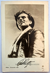Pastkarte, kas veltīta 1939. gada latviešu filmai "Zvejnieka dēls". Ar autogrāfu.